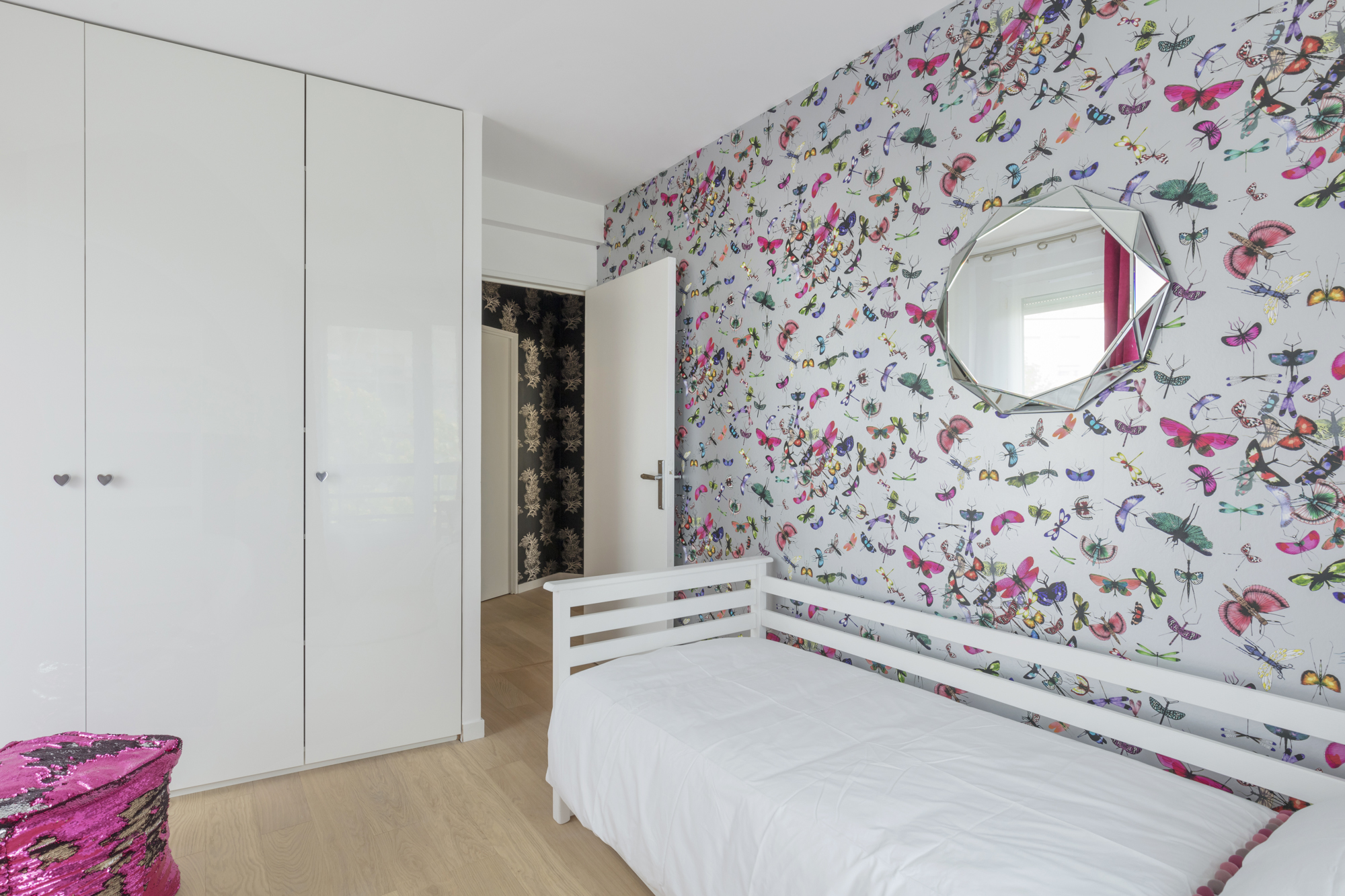 Papillons, paillettes, diamant et cœurs pour cette chambre d’enfants