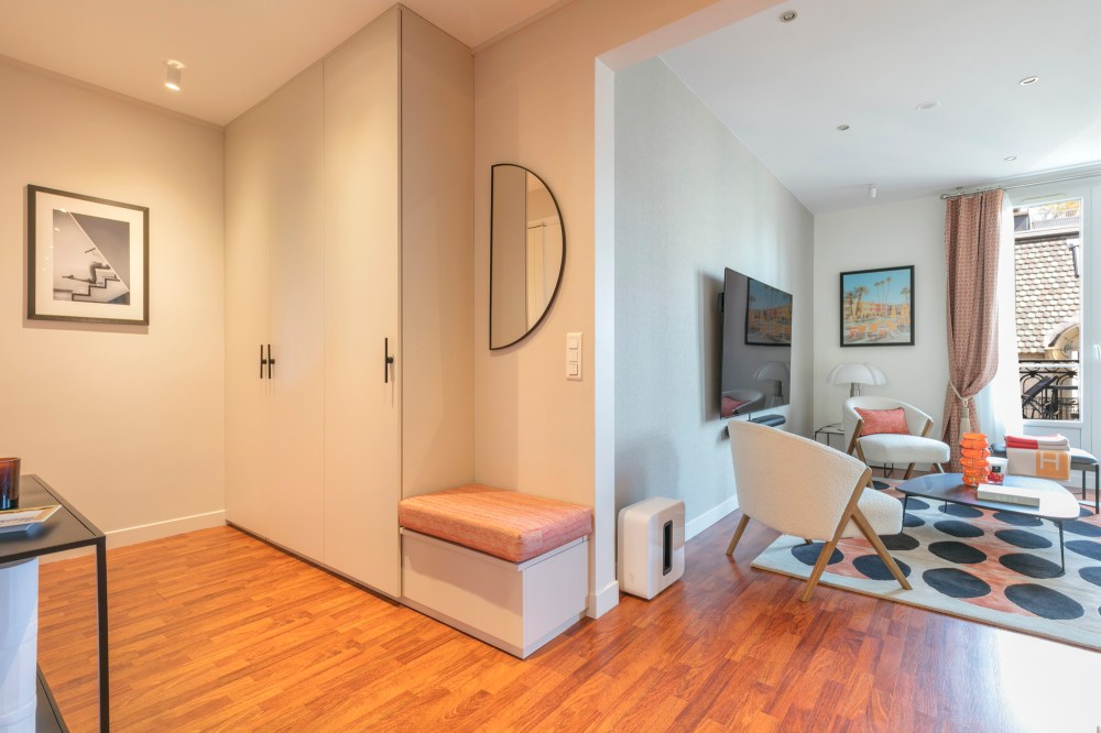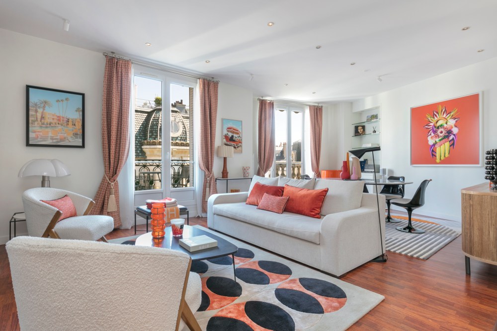 Aménagement et décoration complète d’un grand deux-pièces à deux pas de la rue de Passy, dans le 16e arrondissement de Paris. Œuvres d’art, luminaires iconiques, matériaux luxueux, mobilier sur-mesure et duo de beige et orange font de cet appartement un écrin élégant et design. Visite de cette réalisation à la fois masculine et joyeuse, à l’image de son propriétaire.
